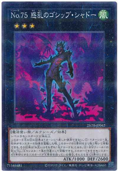レベル3モンスター×2体以上 このカード名の(2)の効果は1ターンに1度しか使用できない。(1):1ターンに1度、相手がモンスターの効果を発動した時、このカードのX素材を2つ取り除いて発動できる。その効果は「お互いはそれぞれ1枚ドローする」となる。(2):自分フィールドの他の「No.」Xモンスター1体を対象として発動できる。このカードをそのモンスターのX素材にする(このカードがX素材を持っている場合、それらも全てX素材にする)。