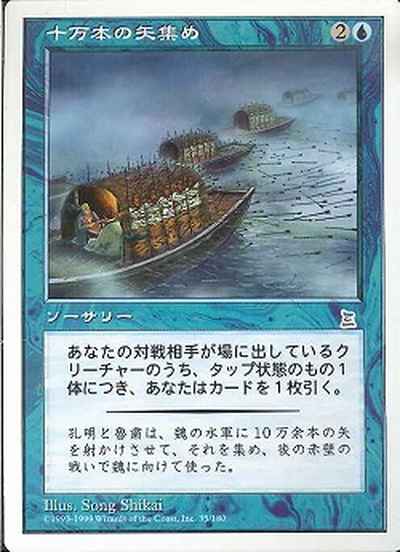 孔明と魯粛は、魏の水軍に10万余本の矢を射かけさせて、それを集め、後の赤壁の戦いで魏に向けて使った。