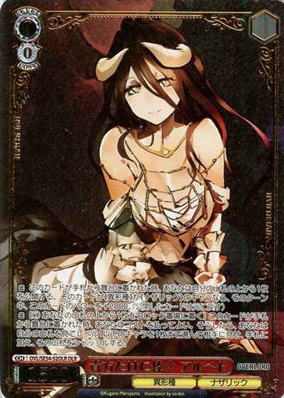 【自】 このカードが手札から舞台に置かれた時、あなたは自分の山札の上から1枚を公開する。そのカードが《異形種》か《ナザリック》のキャラなら、そのターン中、このカードのパワーを+2000。(公開したカードは元に戻す) 【自】[(1) あなたの山札の上から1枚をクロック置場に置く] このカードが手札から舞台に置かれた時、あなたはコストを払ってよい。そうしたら、あなたは自分の山札を見てレベル1以下のキャラを1枚まで選んで相手に見せ、手札に加え、その山札をシャッフルする。