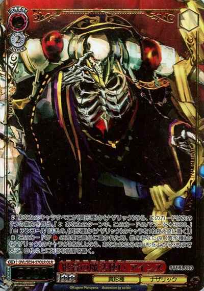 【永】 あなたのキャラすべてが《異形種》か《ナザリック》なら、このカードは次の2つの能力を得る。『【永】 あなたのターン中、このカードのパワーを+3000。』『【自】 アンコール [手札の、《異形種》か《ナザリック》のキャラを1枚控え室に置く]』 【自】 このカードがスタンバイの効果で舞台に置かれた時、他のあなたの、《異形種》か《ナザリック》のキャラが2枚以上なら、あなたは自分の山札を上から3枚まで見て、山札の上に好きな順番で置く。