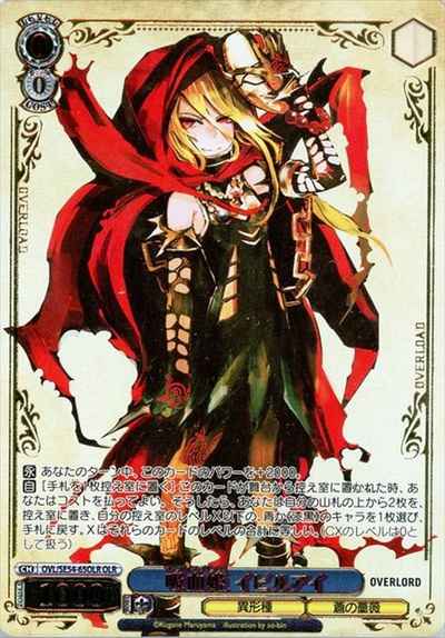 【永】 あなたのターン中、このカードのパワーを+2000。 【自】[手札を1枚控え室に置く] このカードが舞台から控え室に置かれた時、あなたはコストを払ってよい。そうしたら、あなたは自分の山札の上から2枚を、控え室に置き、自分の控え室のレベルX以下の、青か《漆黒》のキャラを1枚選び、手札に戻す。Xはそれらのカードのレベルの合計に等しい。(CXのレベルは0として扱う)