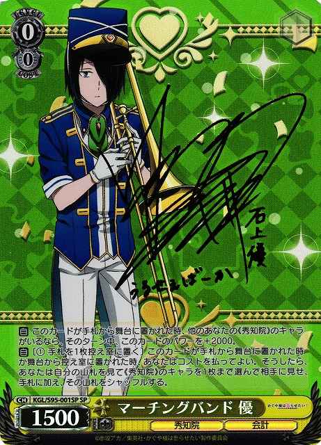 【自】 このカードが手札から舞台に置かれた時、他のあなたの《秀知院》のキャラがいるなら、そのターン中、このカードのパワーを+2000。 【自】[(1) 手札を1枚控え室に置く] このカードが手札から舞台に置かれた時か舞台から控え室に置かれた時、あなたはコストを払ってよい。そうしたら、あなたは自分の山札を見て《秀知院》のキャラを1枚まで選んで相手に見せ、手札に加え、その山札をシャッフルする。