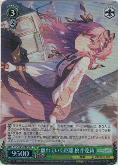 【自】 控え室にこのカードがあるなら、あなたの第1ターンの始めに、あなたはこのカードを思い出にしてよい。そうしたら、あなたは1枚引き、自分の手札を1枚選び、控え室に置く。 【自】 このカードが手札から舞台に置かれた時、あなたは相手に1ダメージを与えてよい。(ダメージキャンセルは発生する)