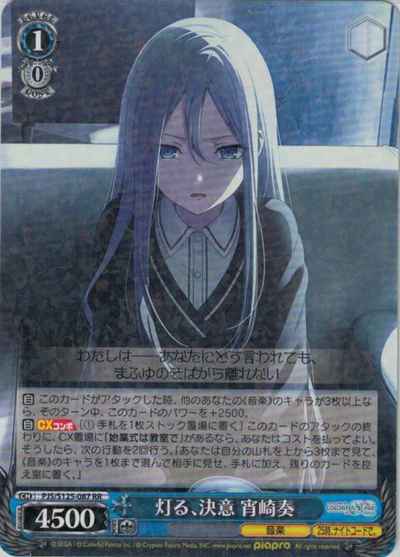 【自】 このカードがアタックした時、他のあなたの《音楽》のキャラが3枚以上なら、そのターン中、このカードのパワーを+2500。 【自】【CXコンボ】[(1) 手札を1枚ストック置場に置く] このカードのアタックの終わりに、CX置場に「始業式は教室で」があるなら、あなたはコストを払ってよい。そうしたら、次の行動を2回行う。『あなたは自分の山札を上から3枚まで見て、《音楽》のキャラを1枚まで選んで相手に見せ、手札に加え、残りのカードを控え室に置く。』