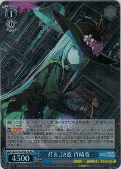 【自】 このカードがアタックした時、他のあなたの《音楽》のキャラが3枚以上なら、そのターン中、このカードのパワーを+2500。 【自】【CXコンボ】[(1) 手札を1枚ストック置場に置く] このカードのアタックの終わりに、CX置場に「始業式は教室で」があるなら、あなたはコストを払ってよい。そうしたら、次の行動を2回行う。『あなたは自分の山札を上から3枚まで見て、《音楽》のキャラを1枚まで選んで相手に見せ、手札に加え、残りのカードを控え室に置く。』