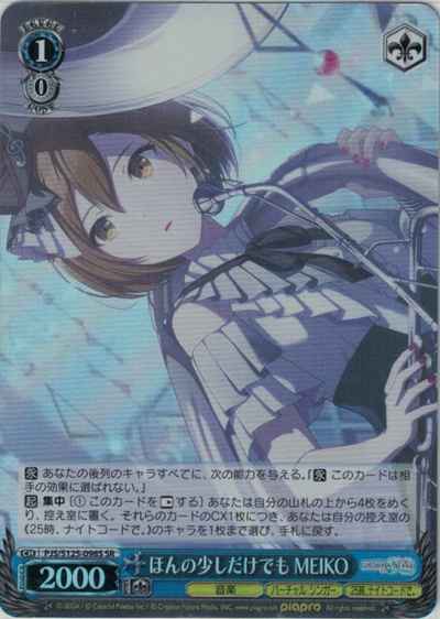 【永】 あなたの後列のキャラすべてに、次の能力を与える。『【永】 このカードは相手の効果に選ばれない。』 【起】 集中 [(1) このカードを【レスト】する] あなたは自分の山札の上から4枚をめくり、控え室に置く。それらのカードのCX1枚につき、あなたは自分の控え室の《25時、ナイトコードで。》のキャラを1枚まで選び、手札に戻す。