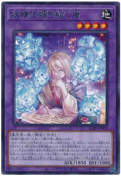 「妖精伝姫」モンスター+魔法使い族モンスター このカード名の(1)の効果は1ターンに1度しか使用できない。(1):自分メインフェイズに発動できる。自分のデッキ・除外状態の「妖精伝姫」モンスター1体を特殊召喚する。(2):このカードがモンスターゾーンに存在する状態で、自分が地属性以外の「妖精伝姫」モンスターを召喚・特殊召喚した場合、相手フィールドの効果モンスター1体を対象として発動できる。そのモンスターの効果は無効化され、カード名を「妖精の王子様」として扱う。(3):フィールドの「妖精の王子様」は魔法使い族になる。