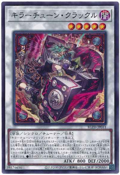 「キラーチューン・クリップ」+チューナー1体以上 このカード名の(1)(2)の効果はそれぞれ1ターンに1度しか使用できない。(1):このカードがS召喚した場合に発動できる。相手のEXデッキを確認し、その内の1枚をエンドフェイズまで表側で除外する。その後、このカードの攻撃力を除外したモンスターの攻撃力分アップできる。(2):S召喚したこのカードが墓地へ送られた場合に発動できる。このカードを特殊召喚する。その後、以下の効果を適用できる。●相手のEXデッキを確認し、その内の2枚をエンドフェイズまで表側で除外する。