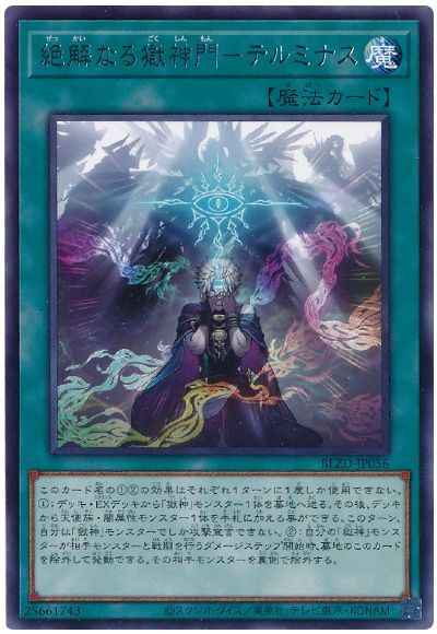 このカード名の(1)(2)の効果はそれぞれ1ターンに1度しか使用できない。(1):デッキ・EXデッキから「獄神」モンスター1体を墓地へ送る。その後、デッキから天使族・闇属性モンスター1体を手札に加える事ができる。このターン、自分は「獄神」モンスターでしか攻撃宣言できない。(2):自分の「獄神」モンスターが相手モンスターと戦闘を行うダメージステップ開始時、墓地のこのカードを除外して発動できる。その相手モンスターを裏側で除外する。