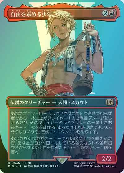 あなたがあなたがオーナーでない呪文1つを唱えるたび、あなたがコントロールしている各スカウトや各海賊や各ならず者の上にそれぞれ+1/+1カウンター1個を置く。