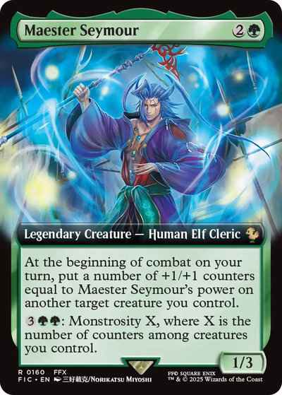 At the beginning of combat on your turn, put a number of +1/+1 counters equal to Maester Seymour's power on another target creature you control.