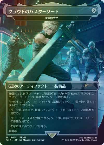 装備しているクリーチャーが戦闘ダメージを与えるたび、梅澤の十手の上に蓄積(charge)カウンターを2個置く。
