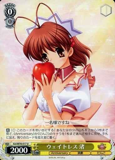 【永】 あなたの控え室のクライマックスが2枚以下なら、あなたの手札のこのカードのレベルを-1。 【永】 他のあなたの後列の、《Anniversary》か《だんご》のキャラ1枚につき、このカードのパワーを+500。 【自】 このカードが手札から舞台に置かれた時、あなたは自分のクロックの上から1枚を、控え室に置いてよい。