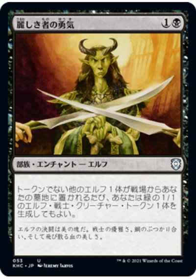 他のトークンでないエルフ(Elf)が戦場からあなたの墓地に置かれるたび、あなたは緑の1/1のエルフ・戦士(Warrior)クリーチャー・トークンを1体生成してもよい。
