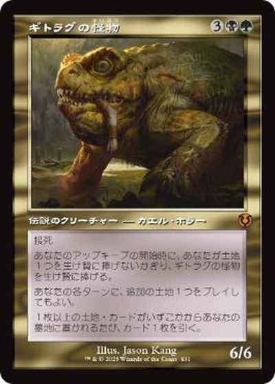 接死 あなたのアップキープの開始時に、あなたが土地1つを生け贄に捧げないかぎり、ギトラグの怪物を生け贄に捧げる。 あなたの各ターンに、あなたは追加の土地を1つプレイしてもよい。 1枚以上の土地カードがいずれかの領域からあなたの墓地に置かれるたび、カードを1枚引く。