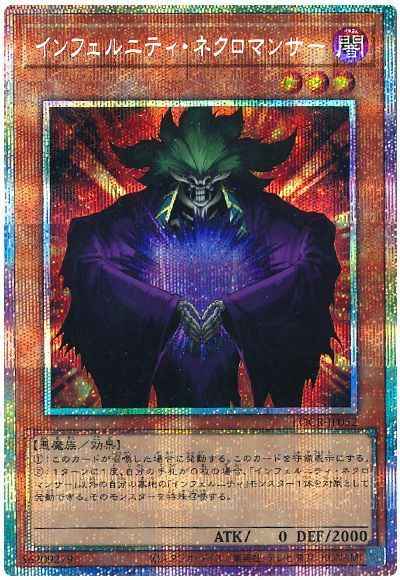 (1):このカードが召喚した場合に発動する。このカードを守備表示にする。(2):1ターンに1度、自分の手札が0枚の場合、「インフェルニティ・ネクロマンサー」以外の自分の墓地の「インフェルニティ」モンスター1体を対象として発動できる。そのモンスターを特殊召喚する。