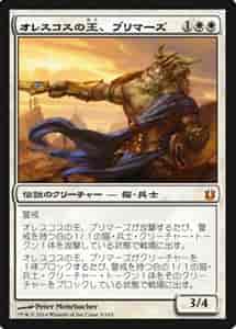 警戒 オレスコスの王、ブリマーズが攻撃するたび、警戒を持つ白の1/1の猫(Cat)・兵士(Soldier)クリーチャー・トークン1体を攻撃している状態で生成する。 オレスコスの王、ブリマーズがクリーチャーをブロックするたび、警戒を持つ白の1/1の猫・兵士クリーチャー・トークン1体をそのクリーチャーをブロックしている状態で生成する。