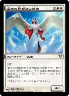 飛行 栄光の目覚めの天使が戦場に出たとき、すべてのゾンビ(Zombie)を追放し、その後あなたの墓地にあるすべての人間(Human)クリーチャー・カードを戦場に戻す。