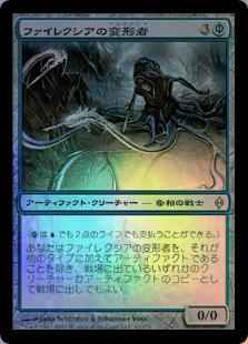 ((青/Φ)は(青)でも2点のライフでも支払うことができる。) あなたは「ファイレクシアの変形者は、これが他のタイプに加えてアーティファクトであることを除き、戦場に出ているいずれかのクリーチャーかアーティファクトのコピーとして戦場に出る」ことを選んでもよい。