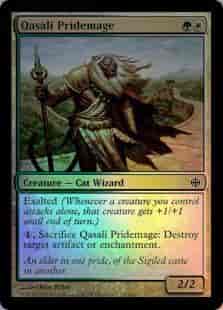 Exalted (Whenever a creature you control attacks alone, that creature gets +1/+1 until end of turn.) {1}, Sacrifice Qasali Pridemage: Destroy target artifact or enchantment.