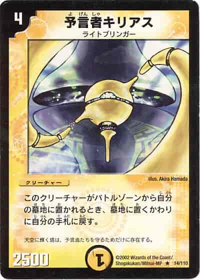 このクリーチャーがバトルゾーンから自分の墓地に置かれるとき、墓地に置くかわりに自分の手札に戻す。天空に輝く塔は、予言者たちを守るためだけに存在する。