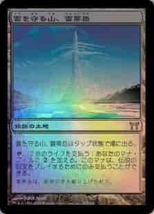 雲を守る山、雲帯岳はタップ状態で戦場に出る。 (T),2点のライフを支払う:あなたのマナ・プールに(◇)(◇)を加える。このマナは、伝説の呪文を唱えるためにのみ支払える。