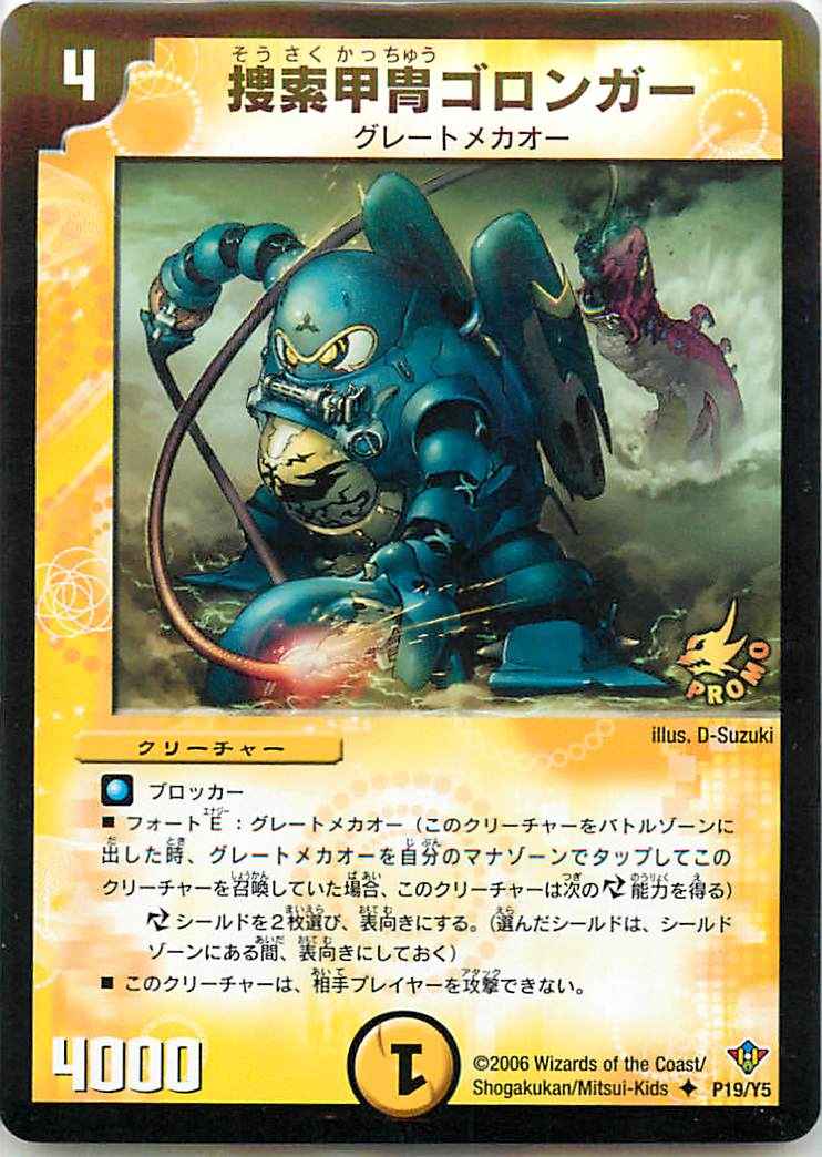 ブロッカー。フォートE:グレートメカオー(このクリーチャーをバトルゾーンに出した時、グレートメカオーを自分のマナゾーンでタップしてこのクリーチャーを召喚していた場合、このクリーチャーは次のFE能力を得る)。FE-シールドを2枚選び、表向きにする。(選んだシールドは、シールドゾーンにある間、表向きにしておく)。このクリーチャーは、相手プレイヤーを攻撃できない。