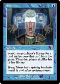 プレイヤー1人を対象とする。そのプレイヤーのライブラリーからカードを1枚探し、それを追放する。その後そのプレイヤーは自分のライブラリーを切り直す。