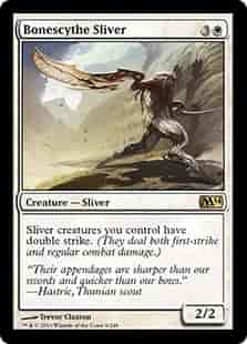 あなたがコントロールするスリヴァー(Sliver)・クリーチャーは二段攻撃を持つ。(それらは先制攻撃の戦闘ダメージと通常の戦闘ダメージの両方を与える。)