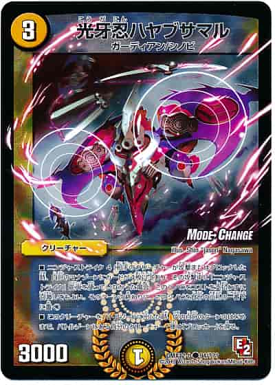 ニンジャ・ストライク 4(相手のクリーチャーが攻撃またはブロックした時、自分のマナゾーンにカードが4枚以上あり、その攻撃中に「ニンジャ・ストライク」能力を使っていなかった場合、このシノビをコストを支払わずに召喚してもよい。そのターンの終わりに、このシノビを自分の山札の一番下に置く)このクリーチャーをバトルゾーンに出した時、次の自分のターンのはじめまで、バトルゾーンにある自分のクリーチャー1体は「ブロッカー」を得る。