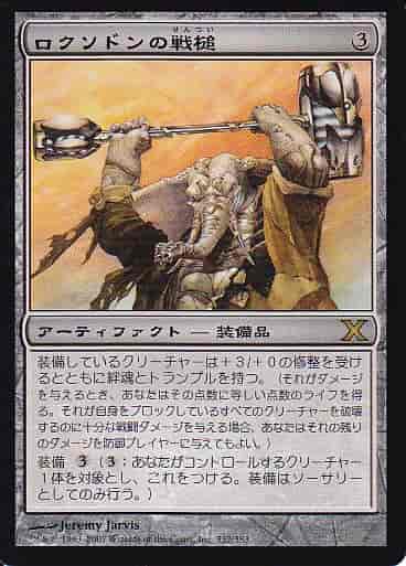 装備しているクリーチャーは+3/+0の修整を受けるとともに、トランプルと絆魂を持つ。