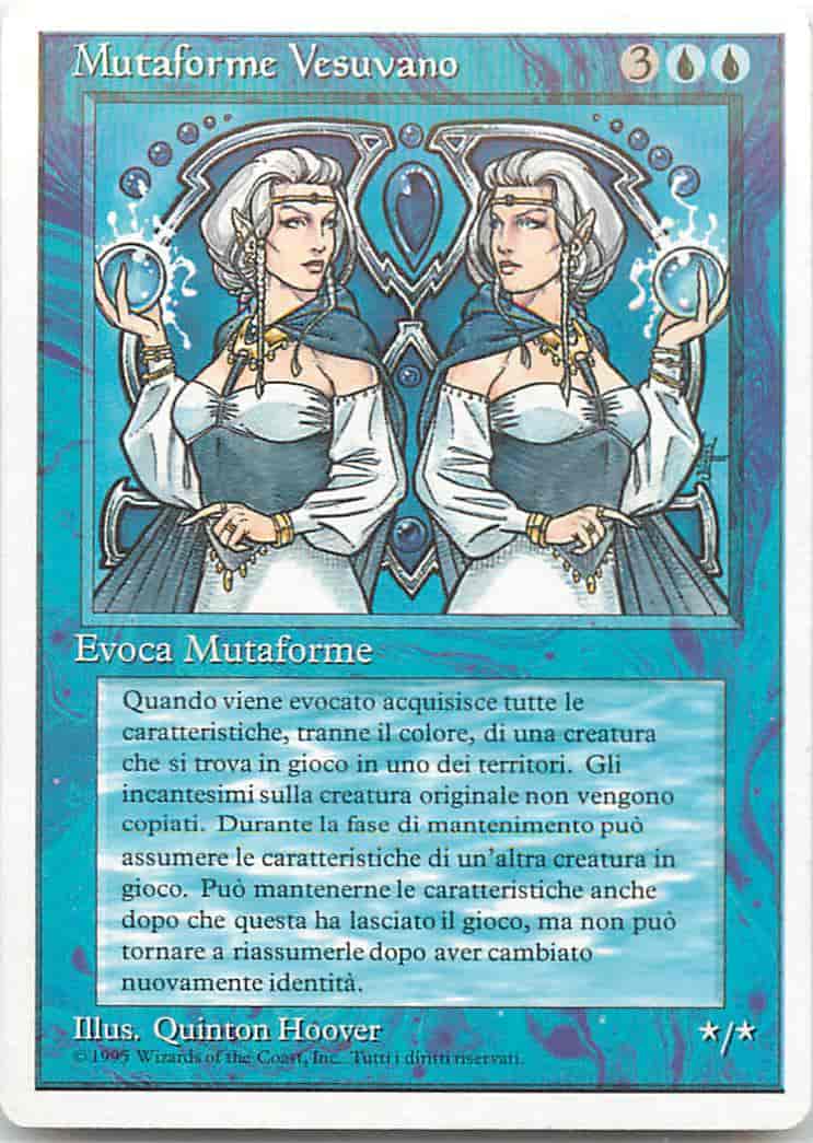 あなたは「Vesuvan Doppelgangerは、そのクリーチャーの色をコピーせず、『あなたのアップキープの開始時に、クリーチャー1体を対象とする。あなたは”Vesuvan Doppelgangerはそのクリーチャーの色をコピーしないことを除いて、このクリーチャーはそのクリーチャーのコピーとなる。そうした場合、このクリーチャーはこの能力を得る”ことを選んでもよい。』を得ることを除いて、それが戦場に出ているクリーチャー1体のコピーとして場に出る」ことを選んでもよい。