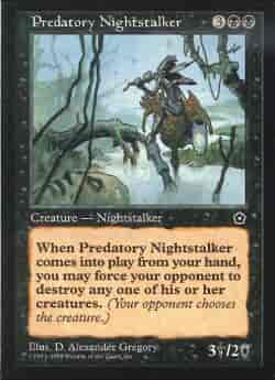 When Predatory Nightstalker enters the battlefield, you may have target opponent sacrifice a creature.