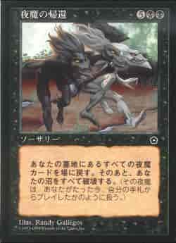 あなたの墓地にあるすべての夜魔(Nightstalker)パーマネント・カードを戦場に戻す。その後あなたがコントロールするすべての沼(Swamp)を破壊する。