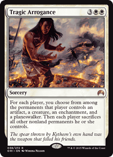 プレイヤー1人につき、あなたはそのプレイヤーがコントロールしているパーマネントの中からアーティファクト1つ、クリーチャー1体、エンチャント1つ、プレインズウォーカー1体を選ぶ。その後、各プレイヤーはそれぞれ、自分がコントロールする他のすべての土地でないパーマネントを生け贄に捧げる。