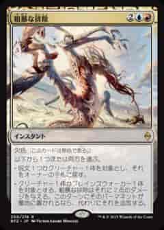 欠色(このカードは無色である。) 以下から1つまたは両方を選ぶ。 ・呪文1つかクリーチャー1体を対象とし、それをオーナーの手札に戻す。 ・クリーチャー1体かプレインズウォーカー1体を対象とする。粗暴な排除はそれに2点のダメージを与える。このターンにそのパーマネントが墓地に置かれるなら、代わりにそれを追放する。