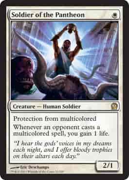 Protection from multicolored Whenever an opponent casts a multicolored spell, you gain 1 life.