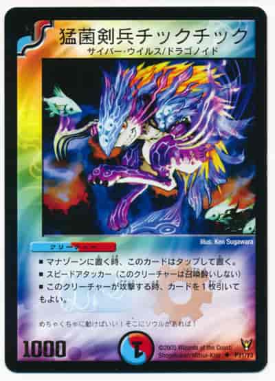 マナゾーンに置く時、このカードはタップして置く。スピードアタッカー。このクリーチャーが攻撃する時、カードを1枚引いてもよい。フレーバー:めちゃくちゃに動けばいい!そこにソウルがあれば!