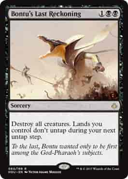 クリーチャーをすべて破壊する。あなたがコントロールする土地は、あなたの次のアンタップ・ステップにアンタップしない。