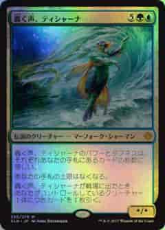 轟く声、ティシャーナのパワーとタフネスは、それぞれあなたの手札にあるカードの枚数に等しい。 あなたの手札の上限はなくなる。 轟く声、ティシャーナが戦場に出たとき、あなたがコントロールしているクリーチャー1体につきカードを1枚引く。