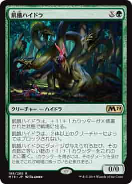 飢餓ハイドラは、+1/+1カウンターがX個置かれた状態で戦場に出る。飢餓ハイドラは、2体以上のクリーチャーによってはブロックされない。飢餓ハイドラにダメージが与えられるたび、その点数に等しい数の+1/+1カウンターをこれの上に置く。(カウンターを得るには、そのダメージを受けた後でこれが戦場に残っている必要がある。)