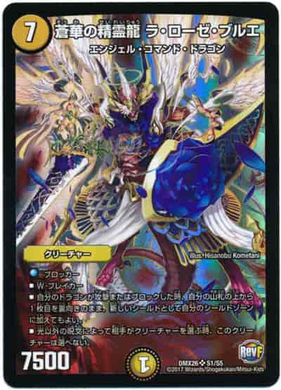 ■ブロッカー■自分のドラゴンが攻撃またはブロックした時、山札の上から1枚目を裏向きのまま、新しいシールドとして自分のシールドゾーンに加えてもよい。■W・ブレイカー■光以外の呪文によって相手がバトルゾーンにあるクリーチャーを選ぶ時、このクリーチャーを選ぶことはできない。