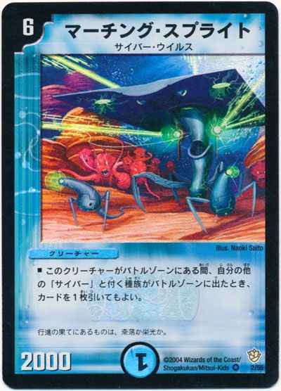 このクリーチャーがバトルゾーンにある間、自分の他の「サイバー」と付く種族がバトルゾーンに出たとき、カードを1枚引いてもよい。行進の果てにあるものは、奈落か栄光か。