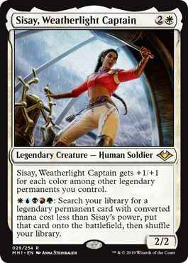 ウェザーライトの艦長、シッセイは、他の、あなたがコントロールしている伝説のパーマネントの中の色1色につき+1/+1の修整を受ける。