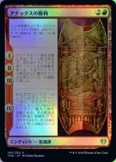 I,II,III ― クリーチャー1体を対象とする。ターン終了時まで、それはトランプルを得て、+X/+0の修整を受ける。Xは、アナックスの勝利の上に置かれている伝承カウンターの総数に等しい。
