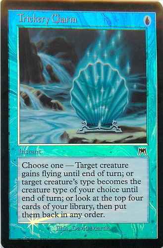 以下から1つを選ぶ。 ・クリーチャー1体を対象とする。それはターン終了時まで飛行を得る。 ・クリーチャー1体を対象とする。それはターン終了時まであなたが選んだ1種類のクリーチャー・タイプになる。 ・あなたのライブラリーのカードを上から4枚見る。それらを、望む順番で戻す。