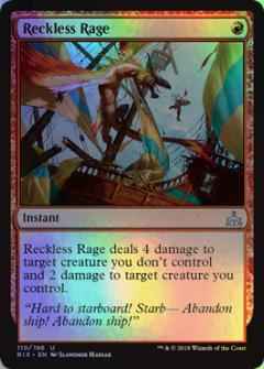 あなたがコントロールしていないクリーチャー1体とあなたがコントロールしているクリーチャー1体を対象とする。無謀な怒りはその前者に4点、その後者に2点のダメージを与える。