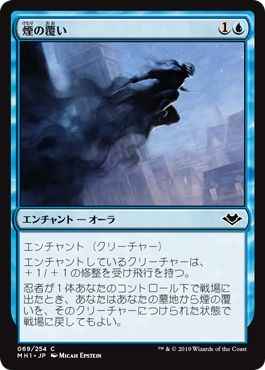 忍者(Ninja)が1体あなたのコントロール下で戦場に出たとき、あなたはあなたの墓地から煙の覆いを、そのクリーチャーにつけられた状態で戦場に戻してもよい。