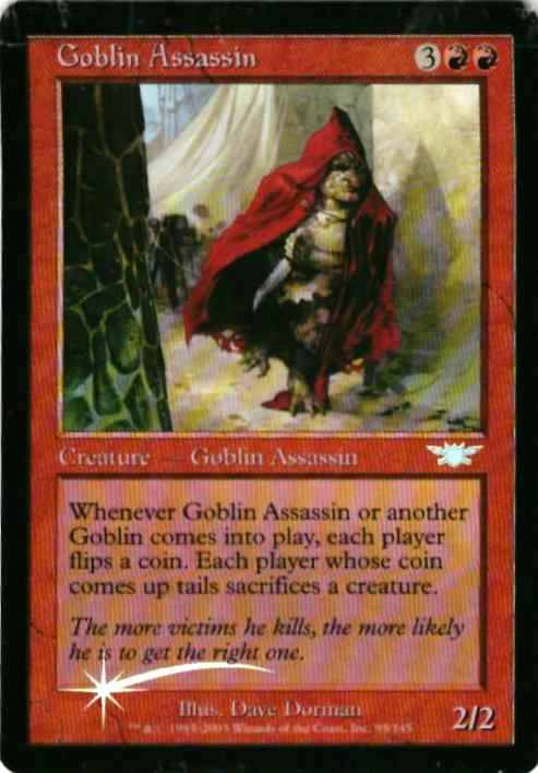 Whenever Goblin Assassin or another Goblin enters the battlefield, each player flips a coin. Each player whose coin comes up tails sacrifices a creature.