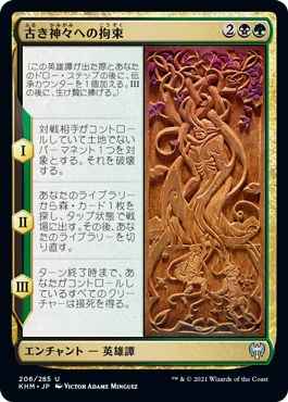 (この英雄譚(Saga)が出た際とあなたのドロー・ステップの後に、伝承(lore)カウンター1個を加える。IIIの後に、生け贄に捧げる。)